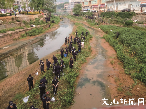 文网讯 5日上午,文山城盘龙河畔炬隆万商汇处人头攒动、热闹非凡,“我爱文山·一水两山之碧水蓝天”河长制河道整治志愿服务活动启动仪式在这里举行。600余名公安民警、消防官兵集聚于此,以实际行动保护母亲河、美化文山,争创全国文明城市。